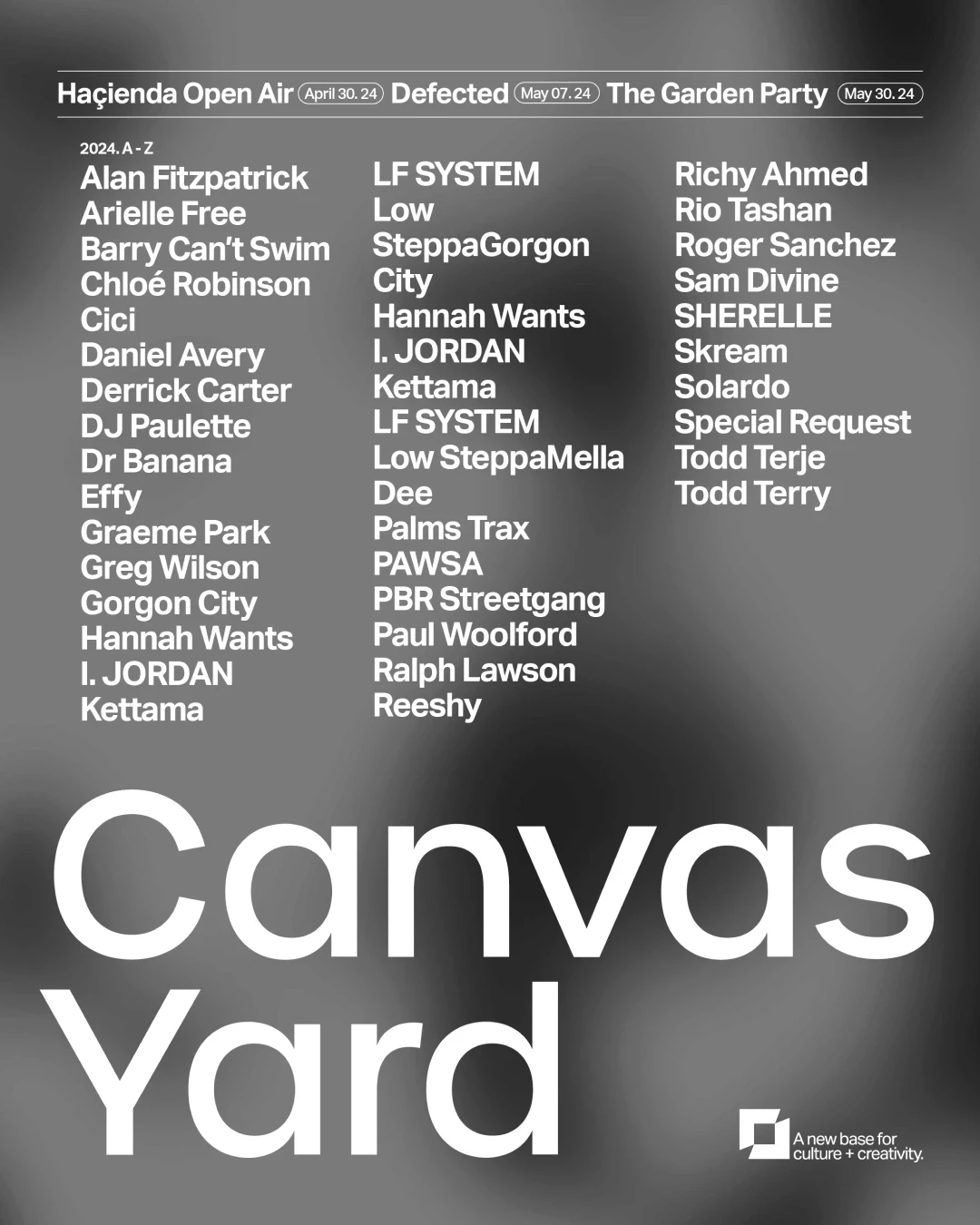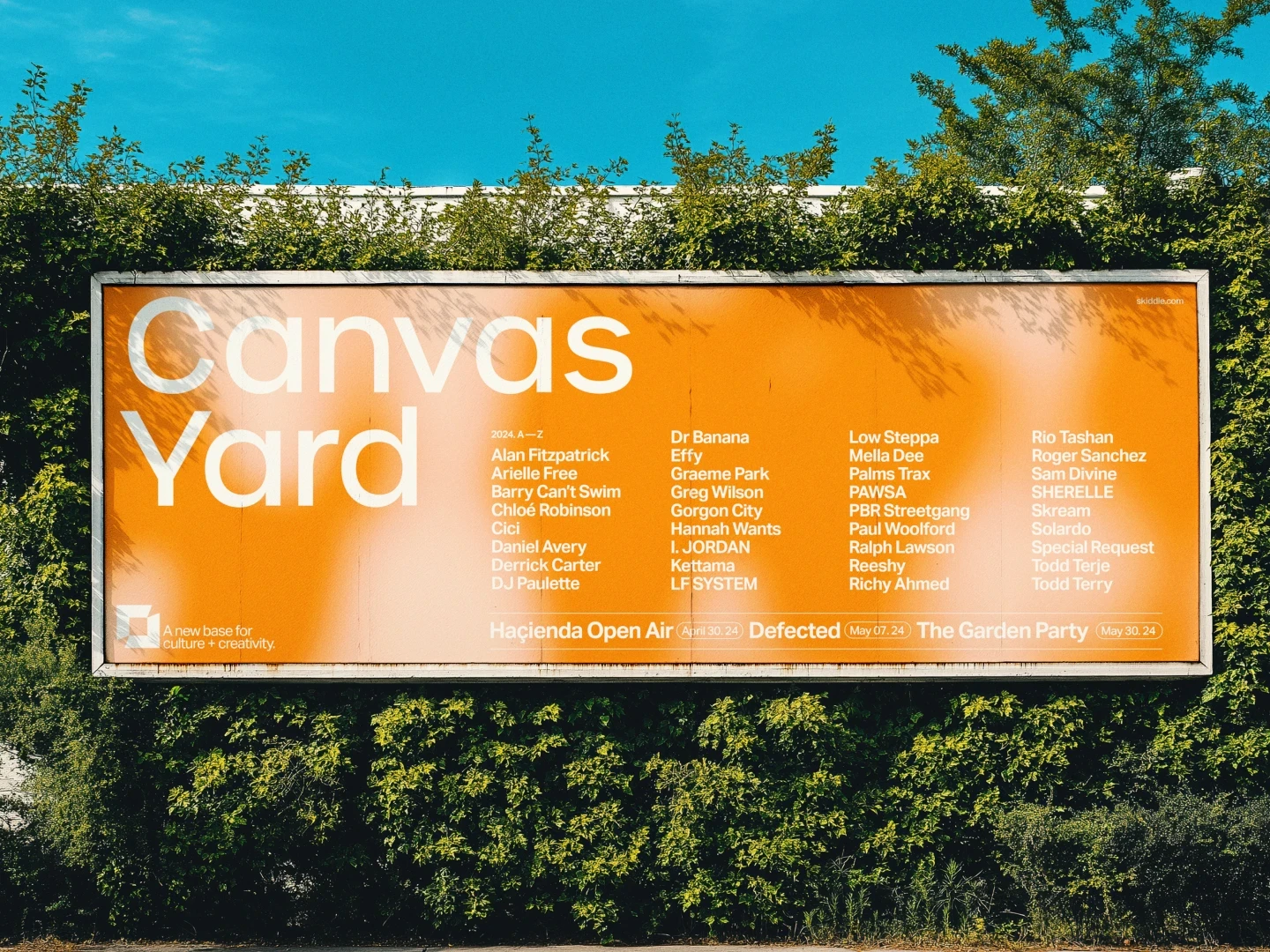— Brief A 103,000 sqft blank space in Leeds city centre was being prepped for a run of large-scale summer shows across 2023 and 2024. The identity needed to feel bold and confident, while remaining versatile enough to sit alongside major brands like Defected, The Garden Party and Haçienda. — Approach The logo is built around a white square — a symbol of the site before activation. Framed by angular elements inspired by canvas keys, the mark hints at creative potential and change. These shapes subtly form arrows, drawing the eye inward to represent the return of energy, people and culture. The wordmark is carefully aligned and proportioned to reinforce clarity, order and purpose.